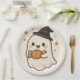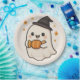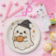 Ein bezaubernder Geist im kawaii-Stil, der Süßigkeiten trägt, einen Hexenhut trägt und von goldenen Sternen umgeben ist. Ideal für niedliche Halloween-Liebhaber und Fans der pastellfarbenen Ästhetik. Ideal für Aufkleber, Tasse, Totbeutel und T - Shirt.