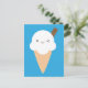 Ein klassischer britischer Vanilleeiskegel '99' mit Schokoladenflocken, kawaii Stil, auf einem hellblauen Hintergrund. Die perfekte sommerliche Leckerei.