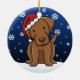 Niedliche Chesapeake-Bucht-Retriever-Weihnachtsverzierung, gezeichnet in kawaii Cartoon! Diese entzückende Hundezucht trägt eine rote Weihnachtsmannmütze, und Schneeflocken fallen ganz um ihn. Absolut entzückend, perfekt für den des Hundebaum liebhabers Weihnachts!