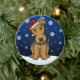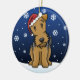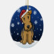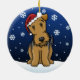 Niedliche Airedale-Terrier-Weihnachtsverzierung, gezeichnet in kawaii Cartoon! Diese entzückende Hundezucht trägt eine rote Weihnachtsmannmütze, und Schneeflocken fallen ganz um ihn. Absolut süß, perfekt für den des Hundebaum liebhabers Weihnachts!