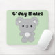 Ein niedliches Mauspad mit einem Kawaii Koala unterhalb der Worte G’day Mate! auf einem pastellgrünen Hintergrund. Ideal für Koala-Liebhaber, Australier und Fans von japanischen Pop Kunst und Kawaii Spaß!
