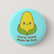 Während Sie ein Lachen und ein leises Lachen über irgendeinem blödem Witz haben, betrachten Sie die Gefühle des Mais. Mais ist traurig, weil es Spaß von gemacht wird. Ein kawaii Cartoon eines Pfeilers von Mais mit den Rissen, die hinunter sein Gesicht strömen. Unterhaltender Titel liest "blöde Witze machen mich traurig." Ein lustiger Knopf für jedermann mit einer blöden Richtung der niedlichen Gekritzel des Spaßes oder der Lieben.