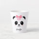 Niedlich Panda personalisierte latte Tasse. Hübsche Chubby kawaii Panda Gesicht mit rosa Wangen und rosa Band. Fügen Sie einfach Ihren Namen hinzu, um die Tasse zu personalisieren. Liebliches Geschenk für ein Mädchen, eine Tochter, eine Freundin zum Geburtstag oder einen anderen besondere Anlass.