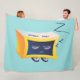 Kawaii Schlafuhr Fleecedecke mit einer lustigen digitalen Abbildung, die einen niedlichen Wecker-Charakter zeigt, der über einen fröhlichen hellblauen Hintergrund schläft.