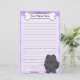 Niedliches Kawaii Spitzbriefpapier hat einen entzückenden Cartoonhund, im schwarzen Mantel, in der unteren rechten Ecke. Fertigen Sie sofort dieses Briefpapier besonders an, indem Sie hier "Ihren Namen" innerhalb des Hundeknochens ersetzen. Der Hintergrund ist ein hellpurpurnes. Vervollkommnen Sie für Pom Eigentümer!
