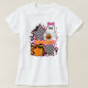 Trendy kawaii Halloween T - Shirt mit einem niedlichen Geist, Kürbis mit Bogen, Schachbrett Sterne & kühnen rosa Splash 🎀 🎃 ⭐. Ideal für sportliche Saisonliebhaber mit Y2K-Villen! Keywords: y2k halloween tee, niedliches ghost Shirt, spuke Girl ästhetisch, pastellfarbene Goth halloween.