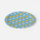 Repeat pattern of happy suns and sad rain clouds on a blue sky background for changeable springtime weather.
