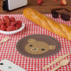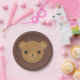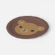 Niedlicher brauner Teddybär auf dunkelbraunem Hintergrund.