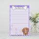 Niedliche Kawaii Neuschottland Enten-läutendes Retrieverbriefpapier mit einem Cartoon Toller in der unteren rechten Ecke. Der Spitzenteil kann mit Ihrem Namen innerhalb des großen Hündchenknochens sofort besonders angefertigt werden. Grenz- und Papierhintergrund sind- lila.