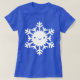 Eine glückliche Kawaii Schneeflocke vor winterblauem Hintergrund.