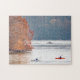Zwei Kajakfahrer mit Angelausrüstung auf der Susquehanna River kurz nach Sonnenaufgang an einem Herbsttag.