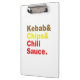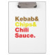 Kebab & Chips & Chili Sauce. Klemmbrett