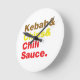 Kebab & Chips & Chili Sauce. Runde Wanduhr