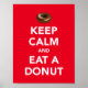 Keep calm and eat a donut. Change background color, poster size and material. Get it to your home or for your coffee shop.