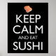 Keep Calm And Eat Sushi. This funny sushi lover accessory is a great sushi lover gift for a man, woman, girls, boys, teens & kids who love to eat sushi & sashimi at Japanese restaurants, and love wasabi, ginger and soy sauce. If you love Japanese food, and eating tuna maki rolls and nigiri sushi with vinegared rice, this sushi lover accessory is for you!