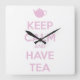 Keep Calm and Have Tea Pink on White Quadratische Wanduhr