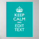 Keep Calm And Your Text Peacock Turquoise Accent Poster