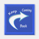 Magnet mit Behalten Zurück geschrieben auf samtig blauem Hintergrund und Pfeil zeigen, als ob.auf den Weg zurück zu kommen.