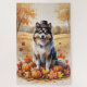 Keeshond im Herbst hinterlässt Erntedank Kunst