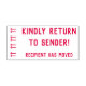 Dieses Design aus Gummi-Briefmarke enthält die Botschaften "Freundliche Rückkehr zum Sender!" und "Der Empfänger hat sich bewegt", zusammen mit einer dekorativen Doppelpfeil-Form. Es könnte verwendet werden, um anzugeben, dass die empfangene Briefpost falsch adressiert worden sein könnte und an den Absender zurückgeschickt werden sollte.