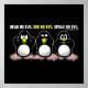 Hört kein Böse, seht kein Böse, sprecht kein Böse. Drei kluge Pinguine Grafik Design.