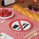 Ein Schild für kein Essen und Trinken erlaubt. Dieses Design sieht wirklich effektiv aus bei diesen Paper-Tellern