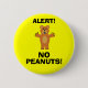 KEINE ERDNÜSSE! Erdnuss-Allergie-Knopf/Abzeichen. Tragen Sie diesen Alarm und lassen Sie Leute wissen, dass Sie nichts wollen, das Erdnüsse enthält. Cartoonbild von gemeinem, Verwirrungsbären schauend! Text liest "ALARM - KEINE ERDNÜSSE!" Ideal für Kinder mit Erdnussallergien.