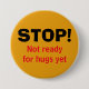 Moderne Gamboge gelbe Taste mit einer einfachen Nachricht, die STOP, NICHT BEREIT FÜR HUGS NOCH in rot und schwarz Typografie. Der rote Text ist KUNDENBAR, sodass Sie Ihre eigene "Behalt Away"-Nachricht erstellen können! Ein idealer Weg, das Hug-oder Ellenbogen-Dilemma zu beseitigen. In anderen Farben erhältlich.