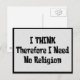 Einfaches und für T - Shirt, Aufkleber und Tasten geeignetes Sprichwort: "Ich denke, deshalb brauche ich keine Religion."