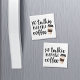 Kann der Gedanke an eine kohärente Konversation nicht einmal ertragen, bevor Ihr Morgen gebräunt? Lass diesem Magneten das Sprechen für dich. Design zeigt "No Talkie Before Coffee" in der handgeschriebenen schwarzen Typografie mit einer verschenkten Kaffeetasse-Illustration.