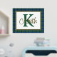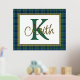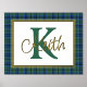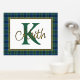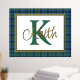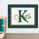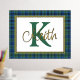 Ein hübscher karierter Streifenfolienprint mit einer im Textbereich gerahmten Goldfolie vor dem Hintergrund des schottischen Keith-Tartan-Musters. Ein großer grüner Single Buchstaben Monogramm und Goldfolienname sind fertig, um personalisiert zu werden.