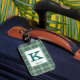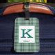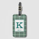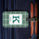 Gepäckanhänger mit dem Kelly Clan Tartan, ein klassisches kariertes Muster in minzgrün und braun, mit Lachs-Rosa und Creme-Highlights. Personalisieren Sie Ihren Initial und Namen auf einer hellen Platte, um die Lesbarkeit zu erleichtern.