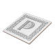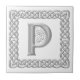 Diese keltische themed trivet Fliese kennzeichnet verwickelte keltische Knüpfarbeit in einem schattierten silbernen Effekt. Eine quadratische Knüpfarbeitgrenze schließt eine große groß geschriebene Initiale oder ein Monogramm P. ein. Ein wunderbares dekoratives Element, zum Ihres schottischen, irischen, Waliser-, kornischen oder französischenkeltischen kulturellen Erbes innerhalb Ihres Zuhause oder Büros anzuzeigen. Diese vielseitige Fliese kann gerahmt auch sein, oder gemacht in einen Trinket- oder Andenkenkasten.