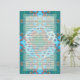 Eine keltische Knüpfarbeitseeschildkröte schwimmt gegen ein kreisförmiges blaues Knüpfarbeitmeer. Mit einem geometrischen Knüpfarbeitmuster als Hintergrund. Gezeichnetes Briefpapier.