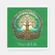 Papierservietten in einem stilisierten keltischen Baum des Lebens, aufwändig detailliert mit sich verwobenen Zweigen und Wurzeln, die einen Kreis bilden, umgeben von verzierter keltischer Knüpfarbeit. Die lebhaften grünen Blätter und der goldbraune Kofferraum symbolisieren Harmonie und Verbundenheit