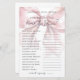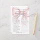 Dieses Niedliche Coquette Style Brautparty Game - Wie gut kennen Sie die Bride? Fügen Sie Ihrem Brautparty eine unterhaltsame Aktivität hinzu, bei der die Gäste eine Reihe von Fragen beantworten, um zu sehen, wie gut sie die Braut kennen. Es ist ein spielerischer Weg, Lachen und Konversation zu entfachen, während sie gefeiert wird. Das Design zeichnet sich durch einen übergroßen, rot-rosa Bogen aus, gepaart mit der Phrase "She's band the knot!" in einer schicken Kombination aus handgeschriebenem schwarzen Skript und klassischen Serif-Schriftart. Die Typografie verleiht dem Coquette Charme, indem sie anmutige Schrift mit zeitlosem Serifentext für einen femininen und stilvollen Look verbindet. Vollständig anpassbar, können Sie die Fragen, Schriftart-Farben und Hintergrund bearbeiten, um Ihr Brautparty-Thema zu passen. Diese Aktivität verleiht jedem Fest eine süße und einnehmende Touch. Dieses Spiel wird manchmal auch als "Schuhspiel" bezeichnet, bei dem Braut und Bräutigam Fragen beantworten können, indem sie einen Schuh hochhalten.
