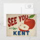 Eine bezaubernde Kent Washington Vintage Reise-Postkarte mit einem schönen roten Apfel, zusammen mit lustigen Retro-Text, der sagt: "See you in Kent"