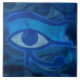 Keramik Kachel mit Auge von Horus strukturiert blau abstrakte Design. Das Horusauge ist in blauen Tönen auf verblassten Horusaugen im Hintergrund zu sehen.