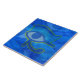 Keramik-Kachel mit Auge von Horus texturiert blau mit goldenem Kontur abstraktes Design. Das Horusauge ist in blauen Tönen auf verblassten Horusaugen im Hintergrund zu sehen.