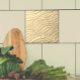Dekorative Keramik Kachel sieht aus wie fließendes Wasser. Die Farbe ist heller Sand oder ocher. Benutzen Sie es für das Bad oder Küche Backsplash. Design von Oregon Fliesenmacher Fay Jones Day
