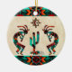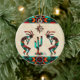 Personalize this "One of a Kind" Southwest Kokopelli Christmas Ornament! It Feature a Two Southwest Kokopelli Playing the Flute and Dancing Around a Cactus Under the Sun haben wir Sandstone Background... Surrounded by Turquoise, Orange and Black Borders! Original Art Design By Artist Kerry Miller.