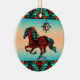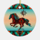 Personalisieren Sie dieses "Eine von einem Kind" Weihnachtsschmuck im Südwesten des Pferdes! Es verfügt über ein südwestliches Pferd Galopp unter der Sonne auf einem türkisfarbenen und orangen Sonnenuntergang ...umgeben von türkisfarbenen, orangen und schwarzen Grenzen! Original Art Design von Künstler Kerry Miller.