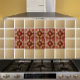Diese dekorative Akzent Kachel zeigt Goldmedaillen auf Wein. Die Tile wiederholt, lassen Sie sich ein paar für einen Brennpunkt in Ihrer Küche Backsplash zusammenstellen. Die Farben sind ocher und pfirsichfarben auf einem Weinboden. Nutzen Sie dies auf Ihrer Küche Backsplash, Bad oder Kamin. Es ist perfekt für Hütte oder Bauernhof. Dieses Design stammt aus Oregon Fliesenhersteller Fay Jones Day.