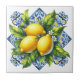 Diese Keramikfliese wird mit einem bedruckten Zitronen-Kunstfliesenmotiv gezeigt.