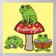 Kernfrosche, die auf und unter einem Amanita-Pilz sitzen, Tee trinken, ein Buch lesen und oben sitzen, personalisieren, indem Sie Ihren Namen in einer beliebigen Hintergrundfarbe ändern