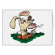 Ein humorvoller Blick auf das Kestrel. Ein Cartoon eines Kaninchens, der seinen Kopf aus einem Loch wirft. Ein Kestrel mit einer Einstellung ist auf seiner Nase stehend. Diese kleinen Vögel haben das Herz eines Löwen und den Komplex von Napoleon.
