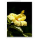 Les belles ketmies jaunes lumineuses fleurissent sur un fond foncé dramatique