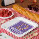 Ein Wasserkocher-Symbol auf einem lila Hintergrund. Dieses Design wirkt auf diese Paper-Teller sehr effektiv
