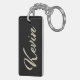Ein sehr schöner edler personalisierter Schlüsselanhänger im whitegold Lettering Look auf schwarz für Kevin.