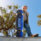 Kevin Skateboard blauen Feuer und Flammen Design.